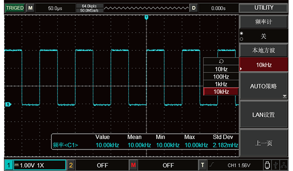 輸出標準方波10Hz、100Hz、1kHz、10kz可選