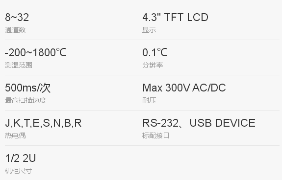 本系列產(chǎn)品采用4.3英寸液晶顯示屏,儀器支持-200℃~1800℃的測試范圍,支持J,K,T,E,S,N,B,R型熱電偶輸入。可同時(shí)對(duì)多路溫度數(shù)據(jù)進(jìn)行采集,具有直觀數(shù)值讀數(shù),柱形圖和曲線圖形顯示方式, 使用者可以多方式讀取各參數(shù), 也可以把數(shù)據(jù)記錄在USB存儲(chǔ)器上,同時(shí)儀器也具有上超下超報(bào)警和通訊傳輸。其完善的功能、優(yōu)越的性能和操作簡單的特點(diǎn),能大量滿足生產(chǎn)、實(shí)驗(yàn)室和研發(fā)測量的需求。儀器支持USB實(shí)時(shí)存儲(chǔ)采樣數(shù)據(jù),用戶可以對(duì)每路數(shù)據(jù)進(jìn)行獨(dú)立校正。同時(shí)標(biāo)配RS232和USB通訊接口,通過標(biāo)配的計(jì)算機(jī)軟件可實(shí)現(xiàn)數(shù)據(jù)采集,分析和打印