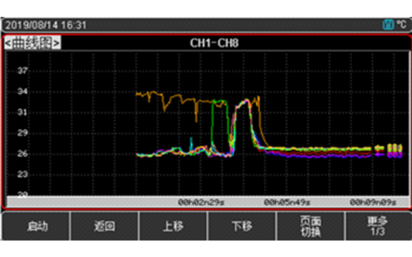手動(dòng)模式:對(duì)當(dāng)前測試通道的溫度在所設(shè)定的溫度范圍區(qū)間的比重,可以直觀觀察到所測溫度距離超限值的距離