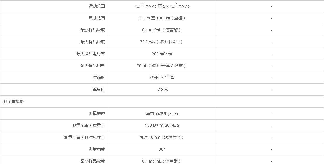 zeta 電位測量降至 0.1 mg/mL,實現最高的靈敏度