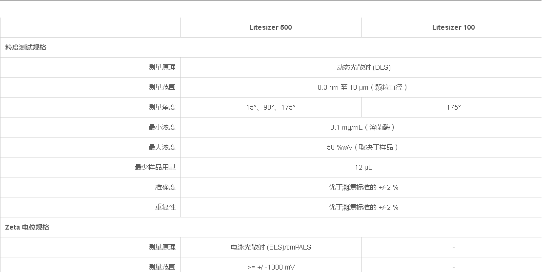 Litesizer 系列是表征納米和微米粒子的完美選擇,只需一鍵觸摸。。分散的顆粒以及溶液中的多肽或大分子可以在較大的濃度范圍內測定,從而限定了樣品制備的時間。Litesizer 500 包括用于粒度測定的三個測量角度以及 cmPALS 專利技術,使 zeta 電位測量在低電壓下具有最高的重復性和準確性。