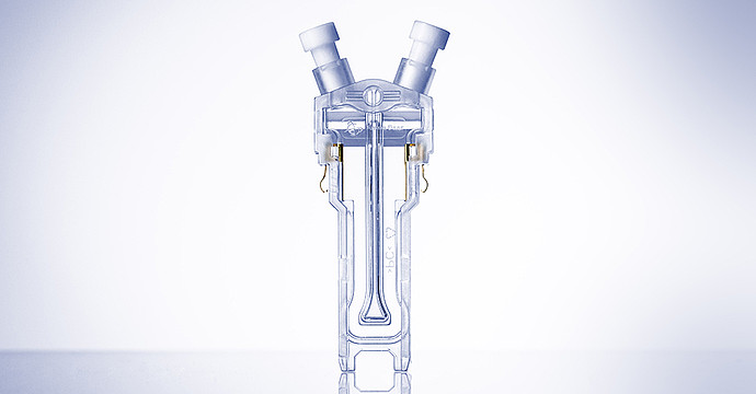 利用 Litesizer 500,您可以通過電泳光散射法執行 zeta 電位測量。cmPALS 專利技術(歐洲專利 2 735 870)允許在樣品濃度最低的情況下進行高靈敏度測量,獲得有意義的結果,測量時間顯著縮短,樣品降解程度最大程度降低。這對肽溶液特別有幫助。此外,獨特的安東帕 Ω 型毛細管 zeta 電位的比色皿在測量位置創建一個完全穩定的電場,促使 zeta 電位測量具有高度可重復性。