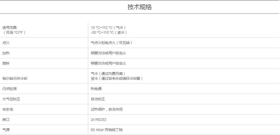 每臺儀器配置兩個點火系統(tǒng)讓您可自由選擇 電子或氣體點火器:如果使用氣體點火器,則電子點火器會在測試過程中根據(jù)需要自動重新點燃氣體火焰