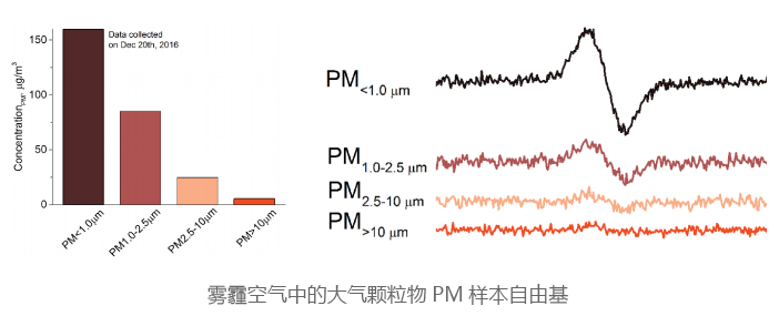 大氣顆粒物中含有過(guò)渡金屬,多環(huán)芳烴類(PAHs)物質(zhì)和醌類物質(zhì),以及一些壽命較長(zhǎng)的,被稱之為“環(huán)境持久性自由基(EPFRs)”的物質(zhì)。EPR技術(shù)能夠?qū)崿F(xiàn)其定性種類分析、定量研究,便于對(duì)污染物種類及污染程度鑒定,幫助研究污染源形成機(jī)理及治理方案研究。