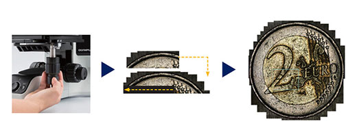 奧林巴斯Stream軟件的景深擴展成像(EFI)功能可采集高度超出物鏡焦點深度的樣品圖像,并可將其合成一幅全聚焦圖像。EFI配合手動或電動Z軸調(diào)焦使用,可輕松實現(xiàn)結(jié)構(gòu)可視化的高度圖像。其也可在Stream桌面版(Desktop)離線情況下生成EFI圖像。