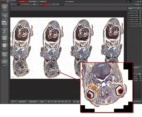 3、LAS X Navigator - 顯微成像的導(dǎo)航系統(tǒng): 快速生成樣品全景圖,瞬間識別目標(biāo)所在點!