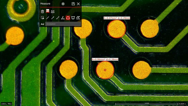 在獨立運行模式中,您可以在實時圖像中測量樣本的多個區域,并將其與結果一起保存。 輕松地在圖像上添加備注和結論、文字和圖形元素,標注樣本的特征和感興趣區域。