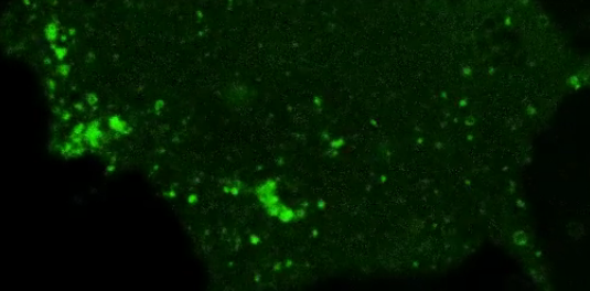 表達EGFP-hRab-5A的活細胞中的囊泡運動。 使用共振掃描儀(50 fps)和動態信號增強成像。 樣本提供方: Sandra Ritz,德國美因茨分子生物學研究所(IMB)顯微鏡和組織學核心設備。 EGFP-hRAB5A由Marino Zerial贈送。