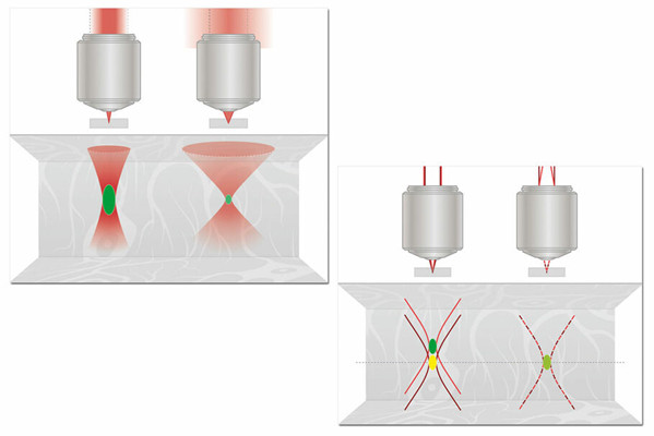 光束捕集器可以輕松解決一些無法控制的因素產(chǎn)生的偏差——無論是激光調(diào)諧、溫度波動還是附近的施工工作,光束捕集器通過簡單的軟件運行來恢復(fù)紅外線和可見激光線的重疊。為了獲得最精確的調(diào)節(jié),專業(yè)使用者甚至可以進一步微調(diào)——實現(xiàn)體內(nèi)深度共定位!