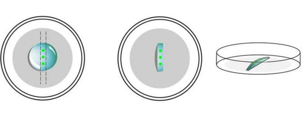 DLS的樣本制備。 樣本嵌入玻璃底培養皿的瓊脂中。 必須去除多余的瓊脂,以便為TwinFlect反光鏡騰出空間。