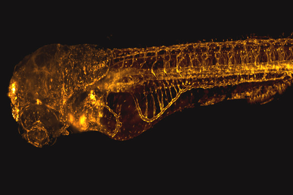圖像: 四日齡的斑馬魚胚胎拼接圖像,已標記的內皮細胞。 圖像由法國伊爾基希-格拉芬斯塔登遺傳與分子細胞生物學研究所 (IGBMC) 影像中心 Elvire Guiot 博士提供。