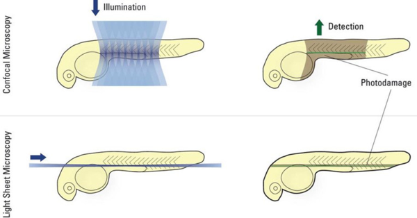 光片顯微鏡對樣本進行單平面照明,非常適合敏感樣本或快速生物過程的成像。