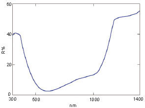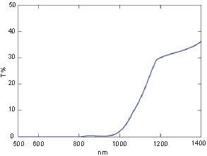 此圖是多晶硅樣品的透過率譜圖,由于系統具有測定到1400nm的能力,清晰顯示了帶隙區域(1000nm附近)的透過率特征。