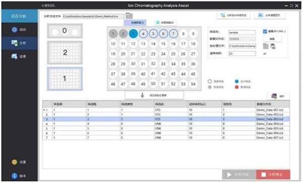易于理解的圖形化界面,批處理分析面板顯示的樣品盤對照圖,設定分析步驟更加直觀高效。可以保存設定好的分析方法與批處理分析計劃,再次使用相同分析方法時可以快速調用。重復分析時可以一鍵分析。