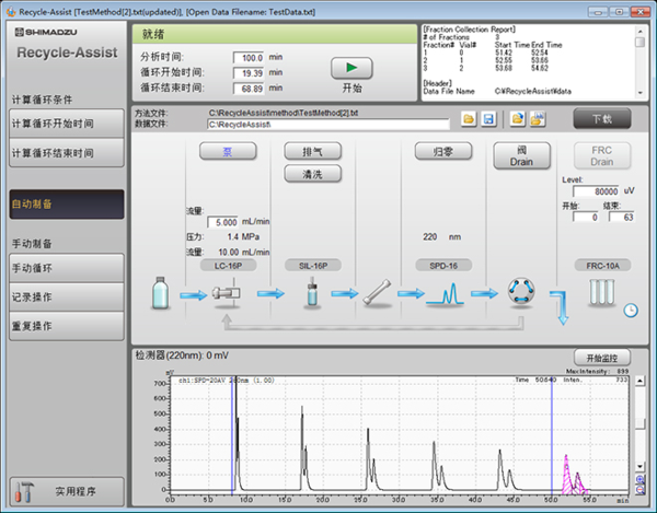 LC-16P輸液泵可以裝上選配的循環組件和循環閥,可實現閉合回路循環分離,且合適的低泵腔體積可以有效阻礙色譜柱以外的擴散,以高效率、低成本、節能環保的方式顯著提升分離效果。通過使用Recycle-Assist循環助手軟件,從循環分離到餾分收集全程都可自動化進行,實現操作方式簡易化、操作流程快捷化。