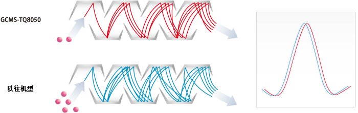 GCMS-TQ8050相比以往機(jī)型,即使到達(dá)檢測(cè)器的離子數(shù)量更少,也可以產(chǎn)生同樣高的信號(hào)強(qiáng)度。這就意味著它可以用較少的離子實(shí)現(xiàn)可靠的痕量分析。