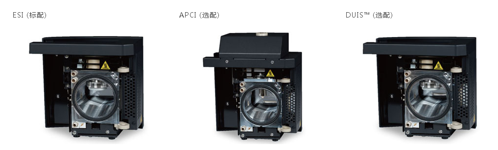 除了標配的ESI離子源外,LCMS-9030還有可選配的APCI和雙離子源(DUIS)探針,以滿足各種分析需求。 DUIS雙離子源提供ESI和APCI兩種電離源效率更高的組合。
