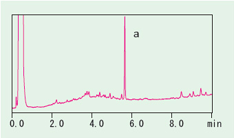 圖3表示按日本藥典收錄的分離條件檢測的雜質a(含約0.2%,參照圖1)的2維的色譜圖。沒有進行捕集濃縮,將峰頂附近導入2維,去除了來自1維流動相的影響,可將目的雜質導入MS。圖4表示對此雜質獲得的MS譜圖。