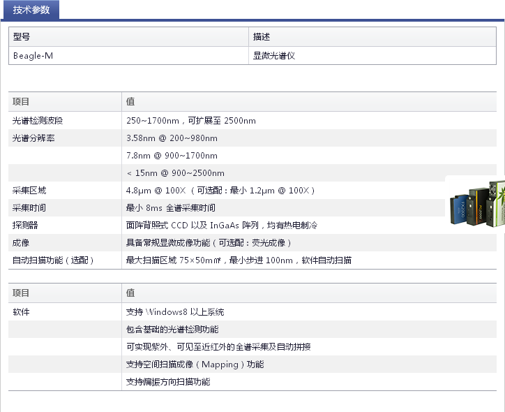 Beagle-M 一套標(biāo)準(zhǔn)的顯微光譜儀250~2500nm 超寬譜段 / 微米級(jí)采樣區(qū)域 / 微區(qū)光譜
