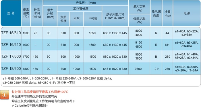 注意:TZF1700℃和1800℃系列的外形和配置類似于CTF系列