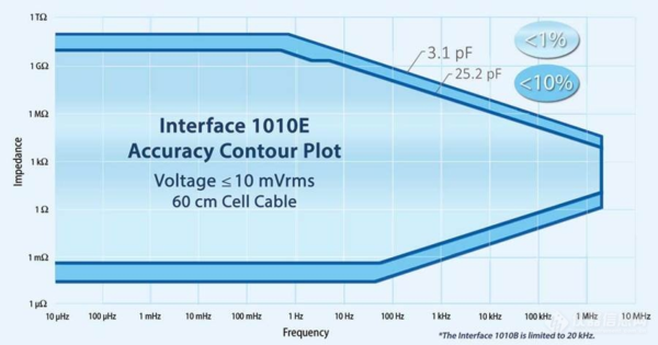 Interface1010E配備了內置式FRA技術執行EIS測量,無需外置式FRA或擴展模塊,采用Garmy電化學阻抗譜軟件,完成從10μHz-2MHz的阻抗測量,寬電流測試范圍準確測量從1010Ω到0.001Ω的阻抗。