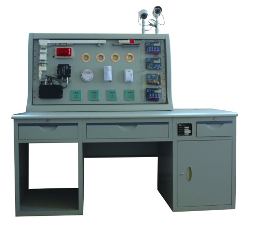 2、 實驗臺是整個系統的依托,采用上下兩部分分離式設計。上半部分是控制部分,用來安裝各種物聯控制對象(窗簾、燈光、電磁門、攝像機、報警器、短信/彩信模塊、各種傳感器等),下半部分是支撐部分,包括操作臺、PC機柜、鍵盤托盤、儲物抽屜、儲物柜。