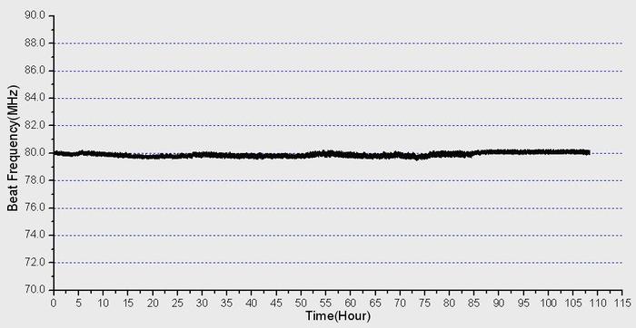 圖 1 超穩窄線寬激光器110小時拍頻數據