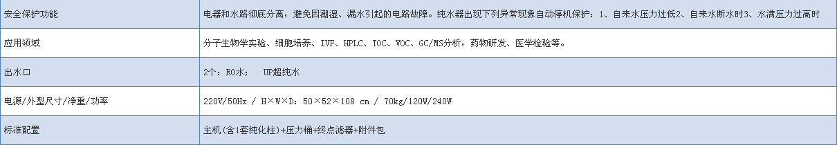 ? 主要部件采用進口品牌,保證優(yōu)良的產(chǎn)水水質(zhì),多種不同配置,滿足你實驗所需。