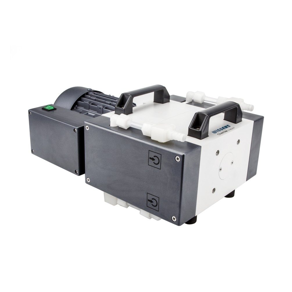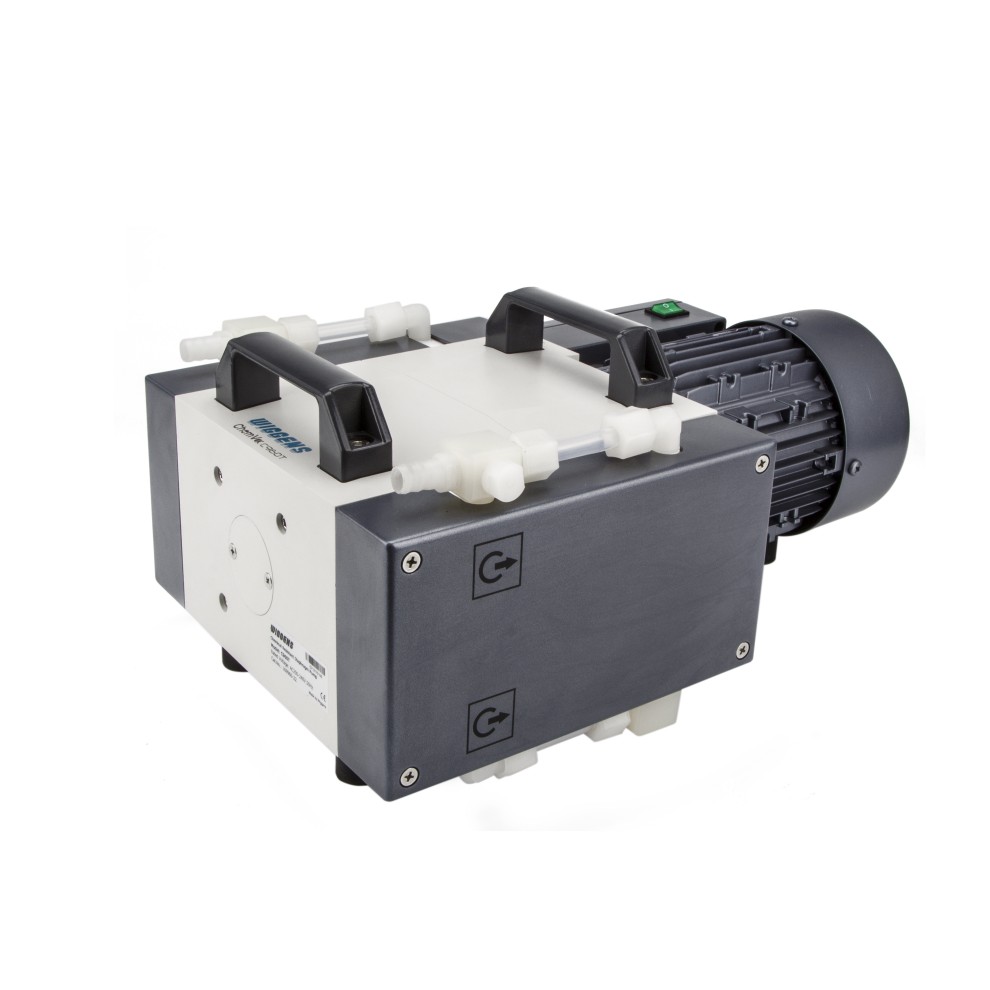 這款泵是我們最受歡迎的化學隔膜泵C900 系列,該真空泵是針對腐蝕性氣體和蒸汽的一種持續的、無油抽氣的優秀解決方案,可以滿足許多有難度的應用要求。C900 系列防腐蝕隔膜真空泵的特殊一體化結構同時具有大抽氣速度和超高極限真空的優點,另外此產品馬達扭矩大,防護等級高,保證各種環境的使用及啟動順暢平穩。C900 系列的所有與被抽介質接觸的部件都是由抗化學腐蝕PTFE 和PVDF 等構成。經廣泛驗證的PTFE“三明治”夾層結構的膜片穩定性更高,延長了操作壽命。廣泛地適用于化學,制藥,石化等諸多領域。另外變頻型真空泵可通過客戶自配變頻器控制或使用我們相匹配的控制系統控制轉速,能夠更加精準地控制真空壓力值,運行平穩可靠節能環保。