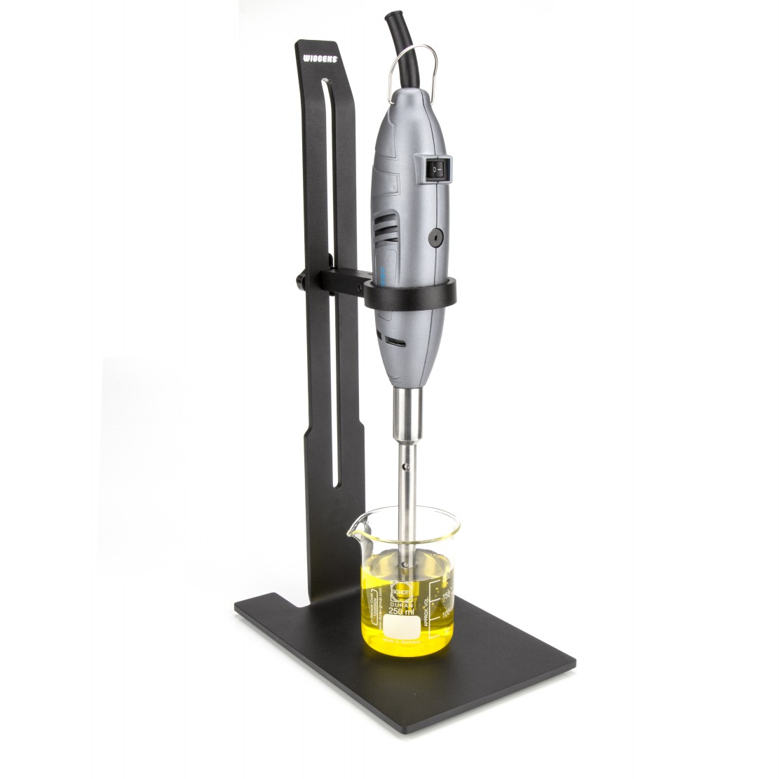 手持式設計,外觀輕巧,可一只手進行操作。操作過程中,將工作頭插入樣品中,馬達帶動定子高速轉動,樣品在定子和轉子之間的縫隙中被均質或者分散。此類操作一般只需很短的時間,即可完成。